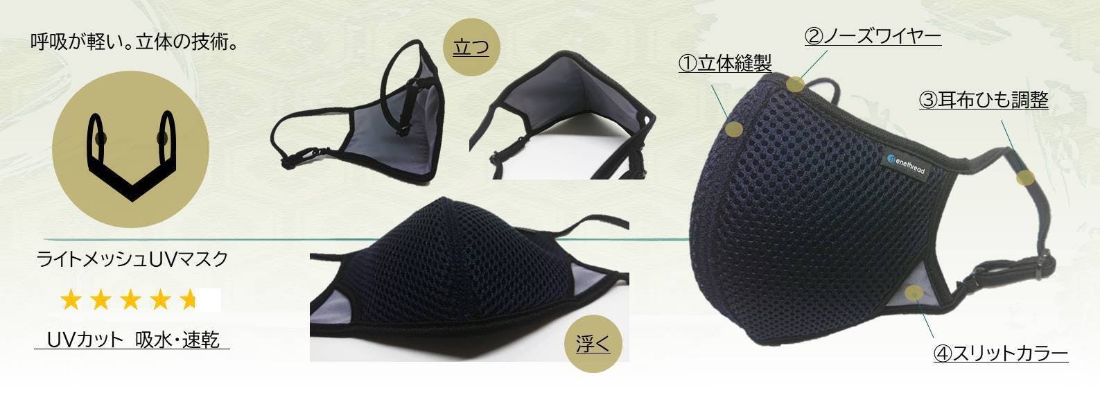 メッシュ素材使用で呼吸がしやすいストレスフリーなライトメッシュUVマスク。「UVカット」「吸水速乾」「接触冷感」などなど機能性抜群だからこの夏にぴったり!プロが選んだ高性能マスクは、子どもにも大人気!選ばれて着けたいマスクです。